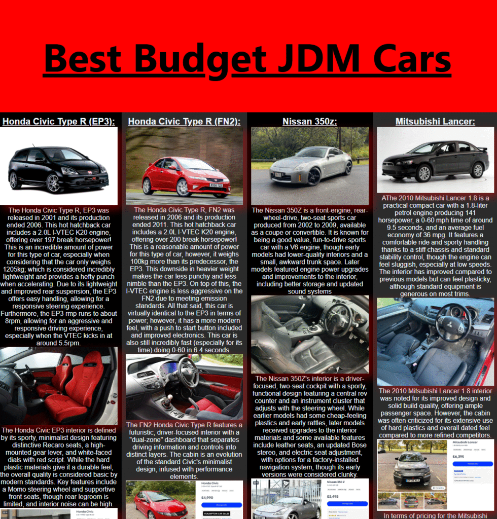 We also got assigned out first assignment project brief, being to make an image gallery using our CSS knowledge. I decided to do my image gallery on JDM cars, as I am interested in the topic. To compliment this, we also had to do a research assignment on one CSS methodology.