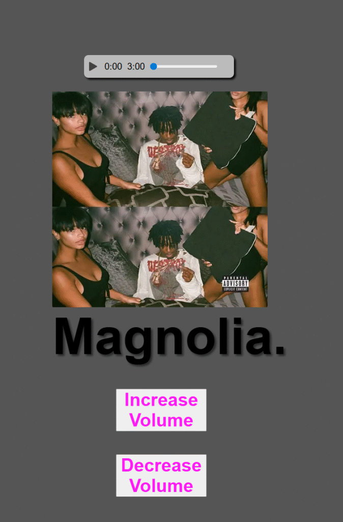 For this day, I focussed on doing the report for my media player, as well as adding onto it by adding an increase volume button. This I struggled with, as the actual functionality worked; however, I couldn’t figure out how to link it to my audio track.